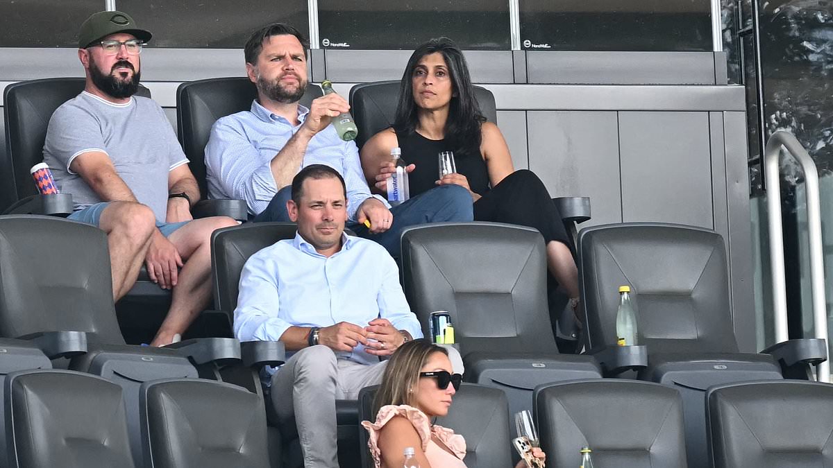 In light of increasing fears about Iranian sleeper cells operating within the United States, Vance was accompanied by his wife Usha and friends at TQL Stadium. Security was visibly tight, with images showing three agents with weapons trained on the crowd to ensure their safety in a VIP box.