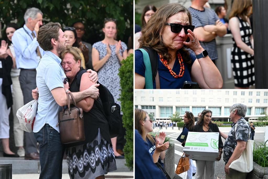Employees received official notices, informing them that their positions were being “abolished.” Many departing staff members were seen leaving the department’s headquarters, with supporters gathered outside applauding their service. Some employees appeared emotional as they bid farewell.