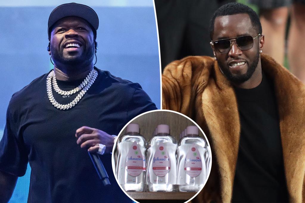 50 Cent’s feud with Diddy has been intensified by previous posts, including AI-generated images that falsely suggest Diddy asked Cassie to get into a pool filled with baby oil. The rapper also shared evidence photos from the FBI raid, which found significant quantities of baby oil in Diddy’s possessions.