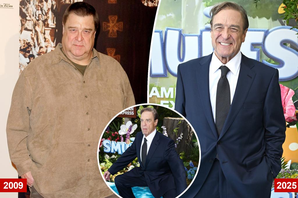 At the recent premiere of “The Smurfs,” John Goodman showcased a remarkable transformation, having shed approximately 200 pounds over the years. Dressed in a navy suit with a white shirt, patterned tie, and brown shoes, he appeared confident and happy, smiling for photographers on the red carpet.
