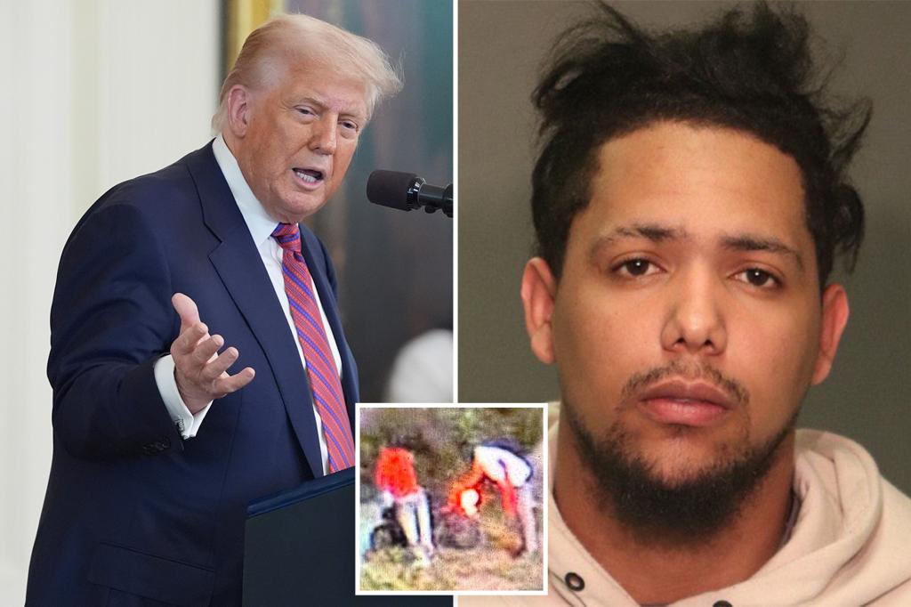 The suspect, identified as Miguel Francisco Mora Nunez, a 21-year-old with a lengthy criminal record and a deportation order, had entered the U.S. illegally in April 2023. Despite being apprehended at the border and issued a removal order, he was released under the Biden administration’s policies, which Trump claims allowed criminals like him to remain in the country.