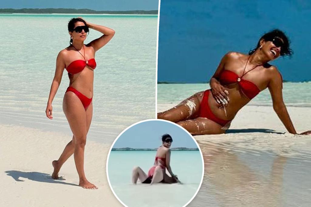 Actress Priyanka Chopra marked her 43rd birthday with a fun-filled getaway to the Bahamas, showcasing her playful side in vibrant swimwear. In a series of Instagram posts, she shared glimpses of her time in paradise, including a playful moment where she sat on her husband Nick Jonas in the shallow waters, both dressed in eye-catching bikinis.