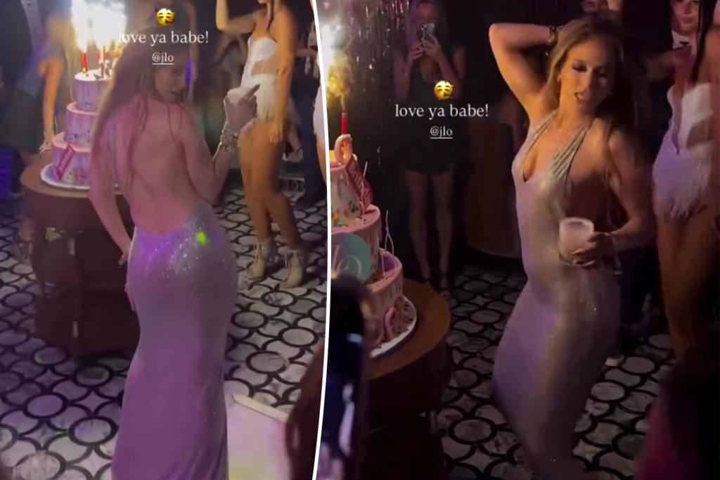 She accessorized with chunky bracelets and rings, and styled her signature hair down past her waist. During the festivities, Lopez was captured dancing to her new single, appropriately titled “Birthday,” sharing clips on Instagram Stories. The event featured a massive three-layer cake and her holding a cocktail, surrounded by friends, dancers, and waitstaff celebrating her special day.