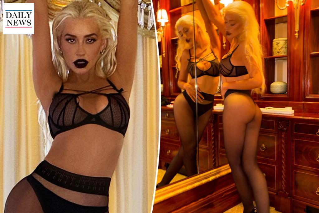 In the photos, Aguilera struck multiple poses, wearing a dark makeup look, and captivating her audience with her bold style. The images captured her in various seductive stances, emphasizing her toned physique and glamorous aesthetic.