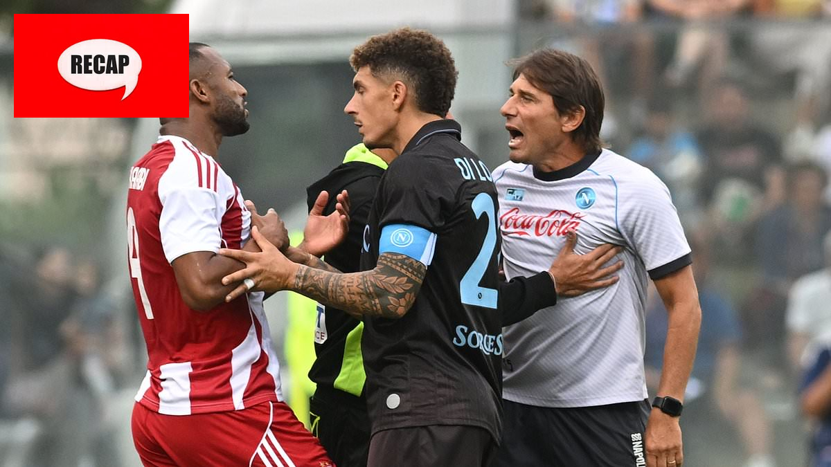 Napoli’s head coach, Antonio Conte, had to be held back on the pitch after an intense confrontation during a friendly match against Olympiacos. The incident occurred following a rough tackle on Amir Rrahmani by Olympiacos player Ayoub El Kaabi, which Conte saw as particularly late and reckless.