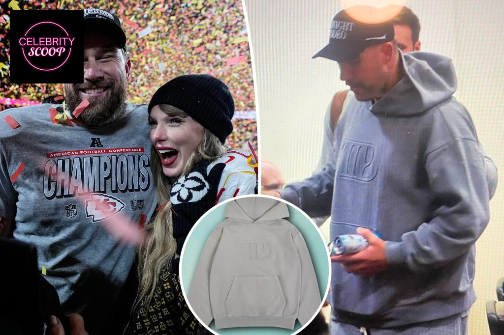 Fans recently spotted Travis Kelce showing his support for Taylor Swift in ESPN’s new Kansas City Chiefs documentary, The Kingdom. During training camp, Kelce was seen sporting a gray embossed hoodie from her merchandise collection, celebrating her latest album, The Tortured Poets Department. He paired it with a Midnight Rodeo trucker hat and matching sweatpants.