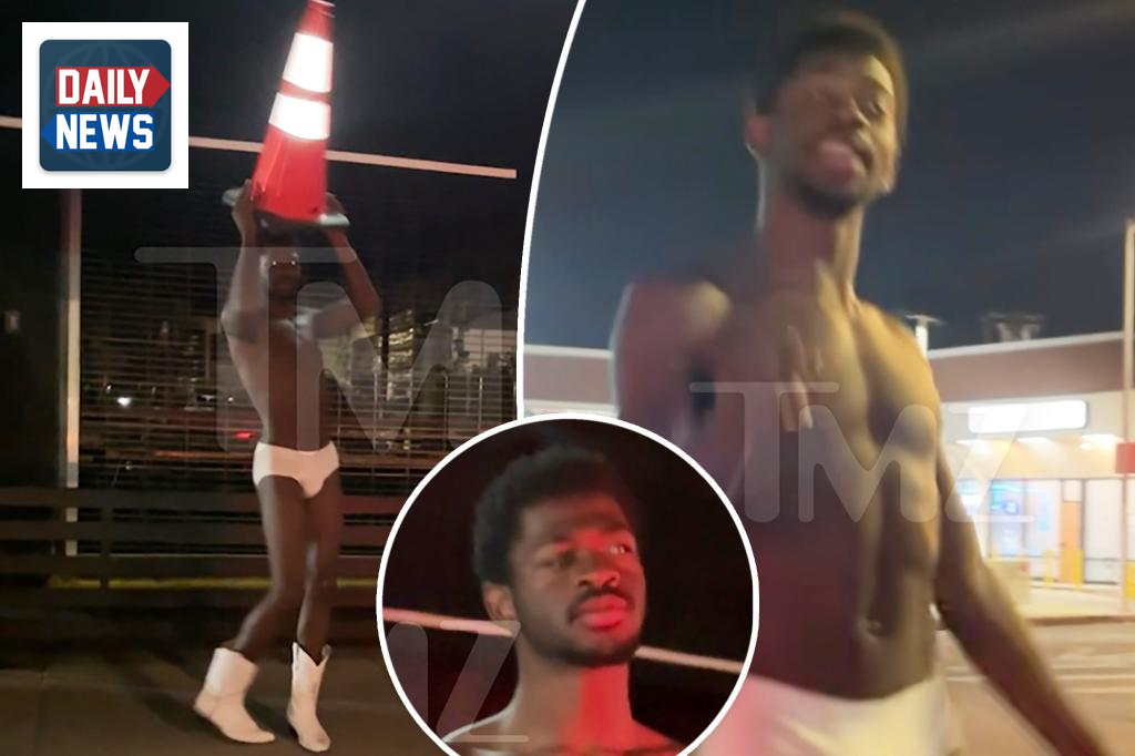 Rapper Lil Nas X was taken to the hospital following an unusual incident in Los Angeles early Thursday morning. Witnesses captured video footage showing the artist wandering Ventura Boulevard around 4 a.m., wearing only white underwear and boots. During the encounter, he told a fan he was headed to a party and placed an orange traffic cone on his head.