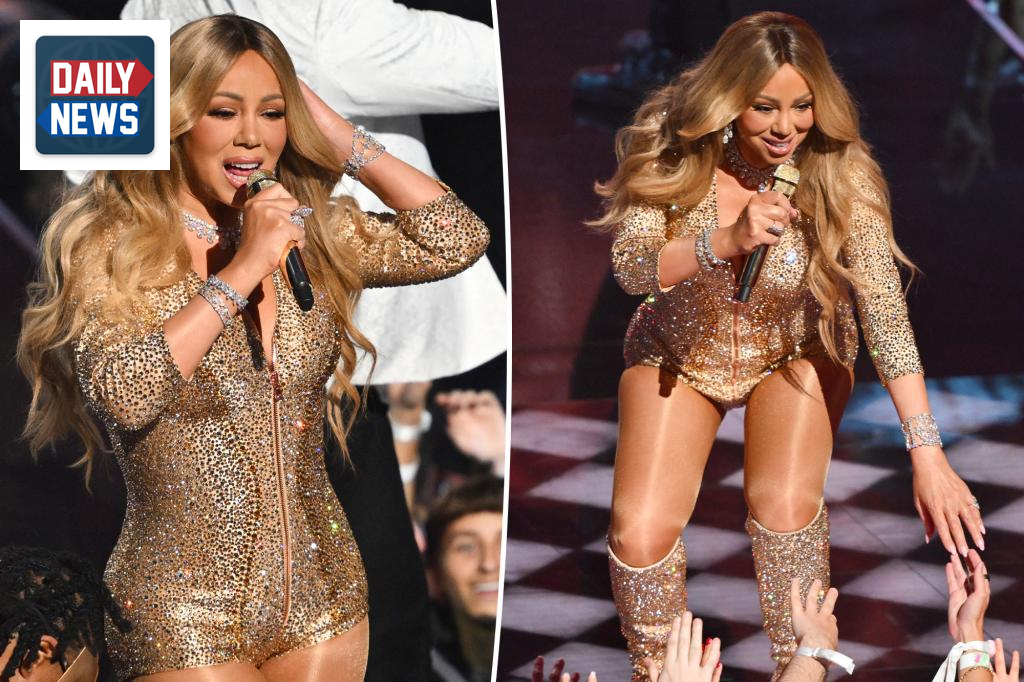 Mariah Carey made a glamorous appearance at the MTV VMAs 2025, where she was honored with the Video Vanguard Award, one of the show’s highest accolades. Although she skipped the red carpet, she took the stage to perform a medley of her greatest hits, beginning her act in a feather-trimmed champagne robe before unveiling a dazzling gold corseted bodysuit complemented by sparkling boots.