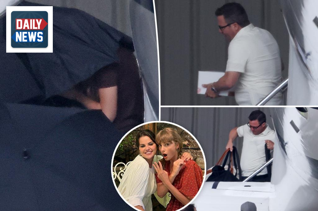 Taylor Swift Arrives in California for Selena Gomez’s Wedding Under Umbrellas