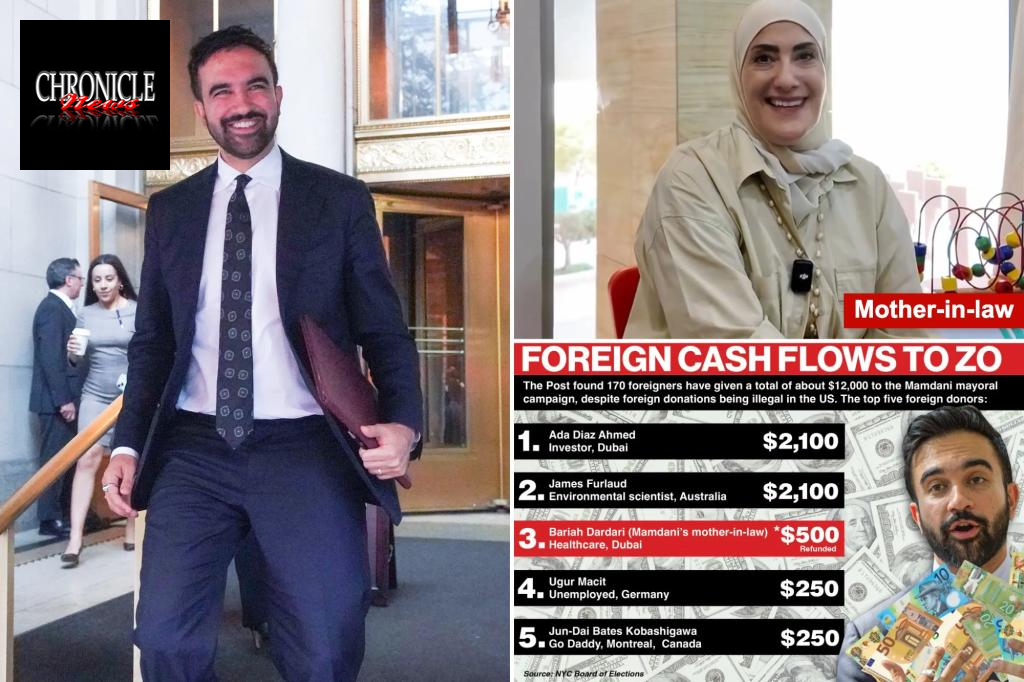 Zohran Mamdani, a leading candidate in the NYC mayoral race known for his leftist stance, has reportedly received nearly $13,000 in potentially illegal foreign contributions. One such donation came from his mother-in-law in Dubai, which was later returned, but records show that 88 foreign donations totaling $7,190 remain unreturned.