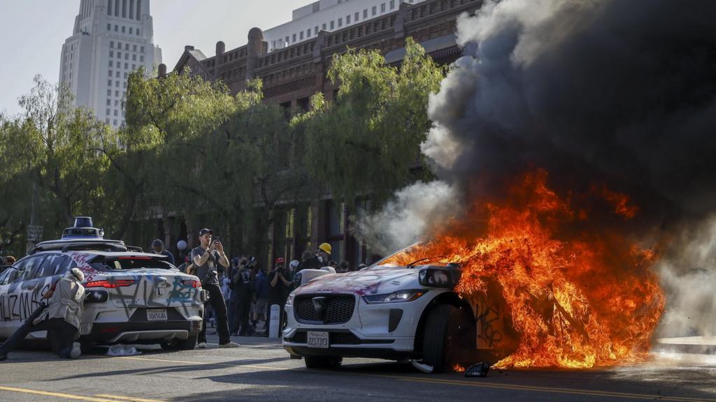 4 min ago 27 people arrested in LA protests From CNN’s Karina Tsui Police officers detain demonstrators during a protest against federal immigration sweeps in downtown Los Angeles, California, on