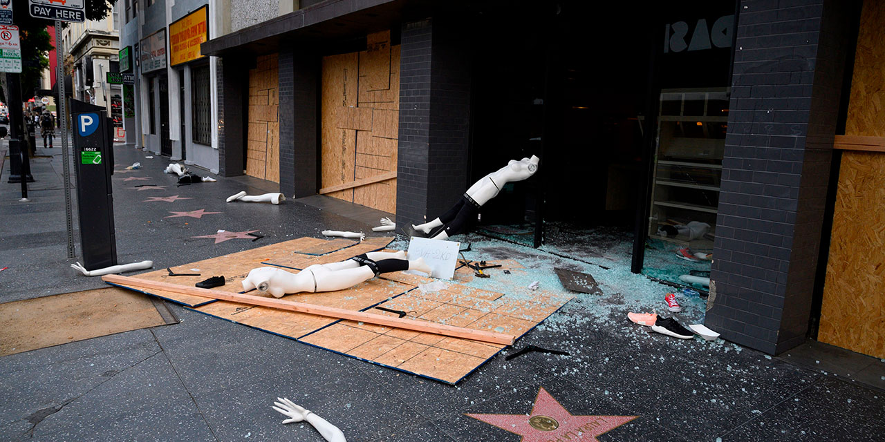 Los Angeles police said they were receiving reports of looting from business owners as videos emerged on social media showing a mass of people running into stores whose frontages had